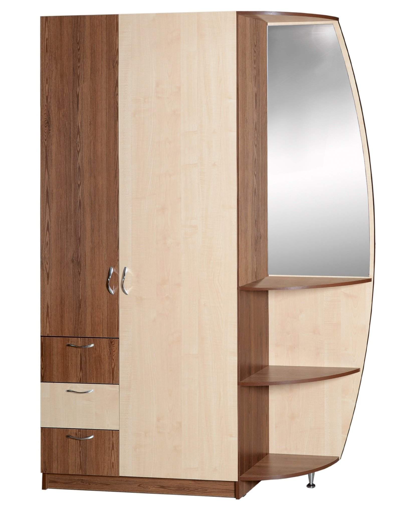 Шкаф: Белье / Платье, угловой элемент, 4 ящика, ручка волна, штанга выдвижная, зеркало